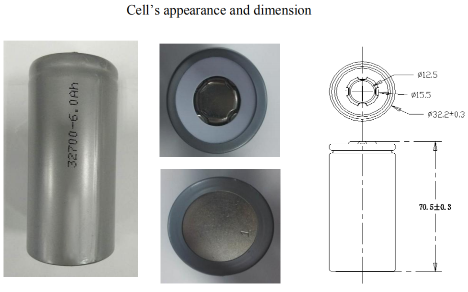 單元大小 | 直徑:32.2±0.3mm,最大32.5mm | 高度:70.5±0.3mm,最大70.8mm |
